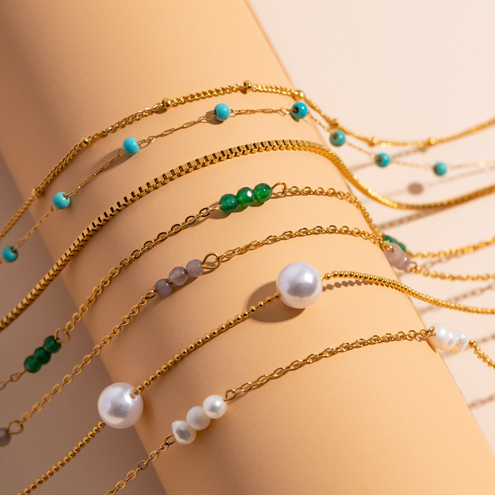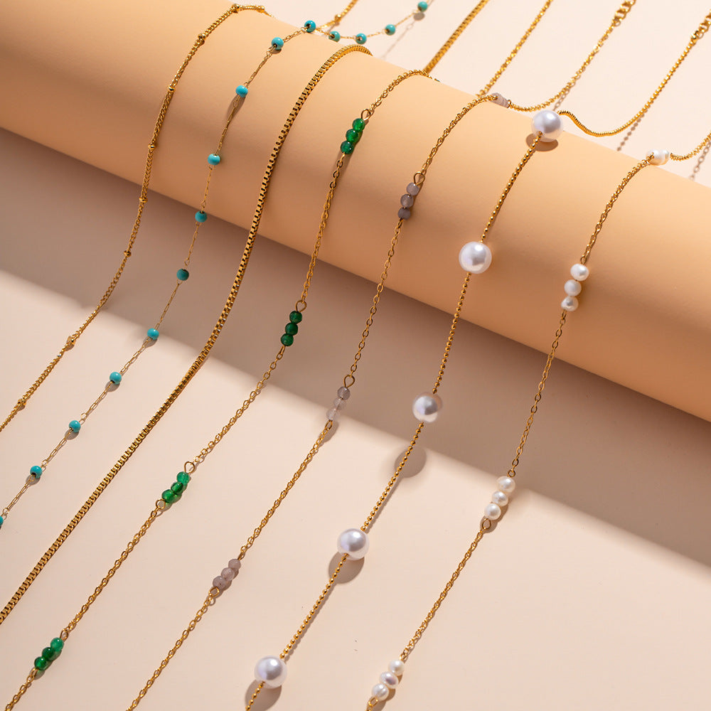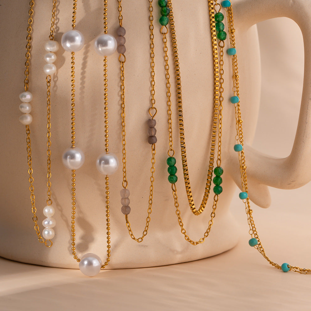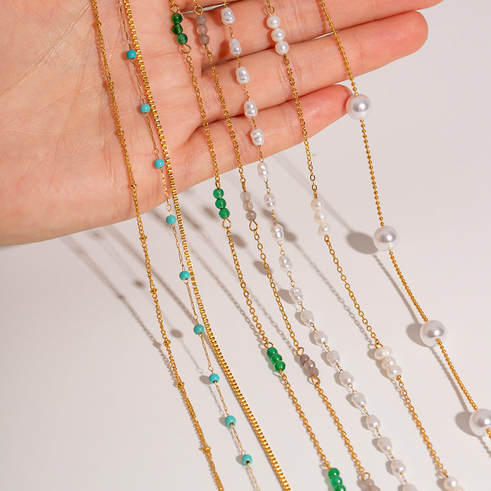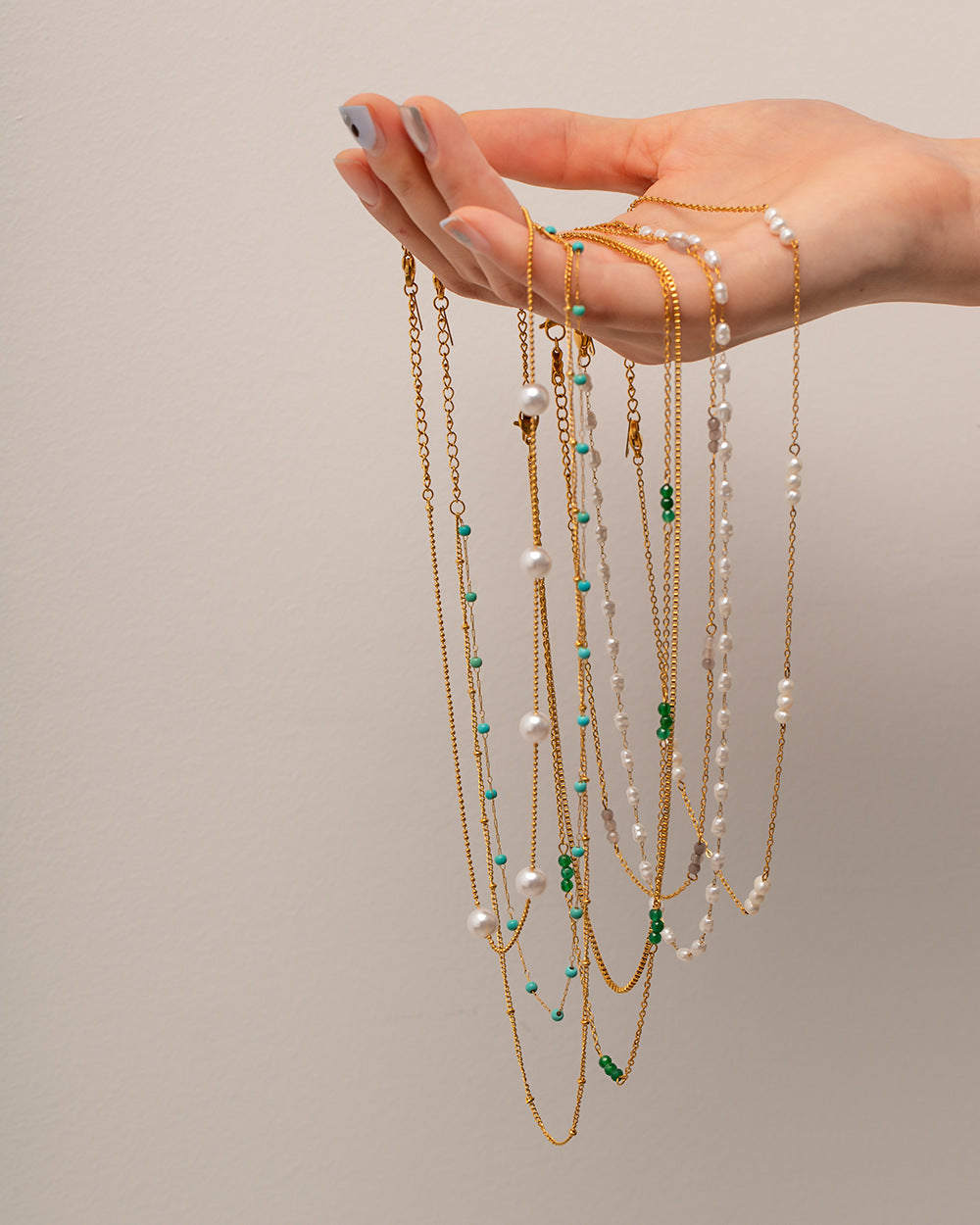 18 Karat Gold Mode Einfache Süßwasserperlen Vielseitige Halskette