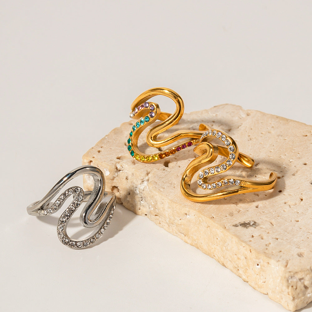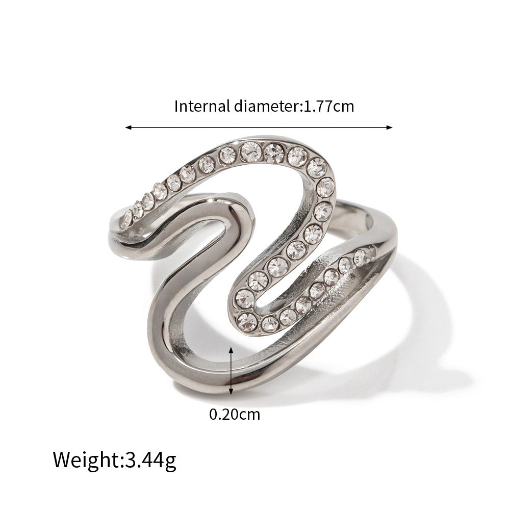 18k Exquisite Simple Geometric Line Double Layer Diamond Design Versatile Ring