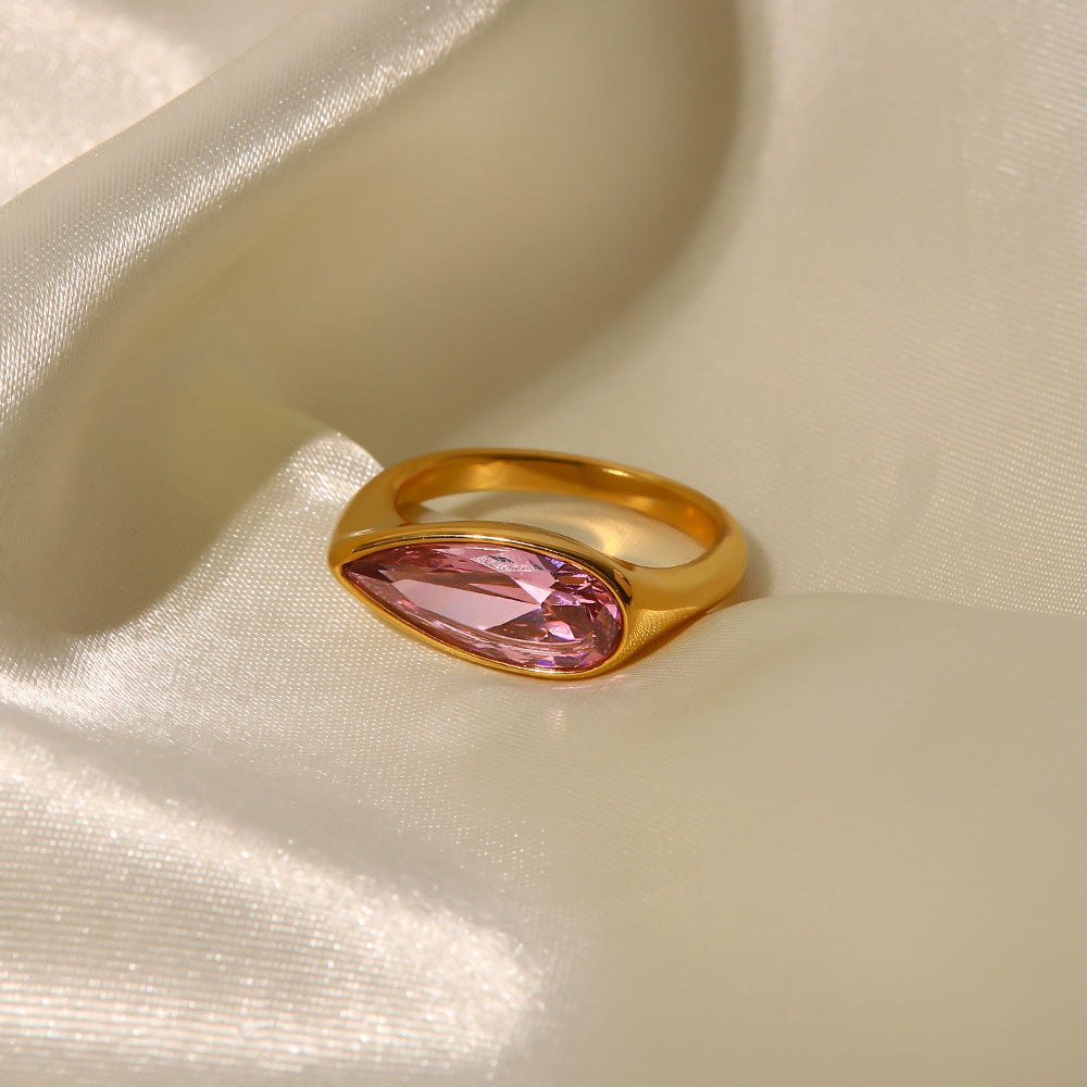 18K Fashion Simple Inlaid Oval Pink Cubic Zirconia Ring
