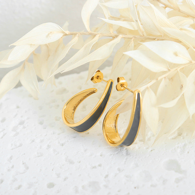 18K Gold Classic Simple Geometric U Shape Design Versatile Earrings