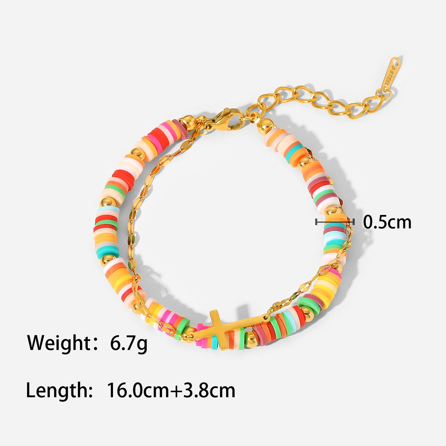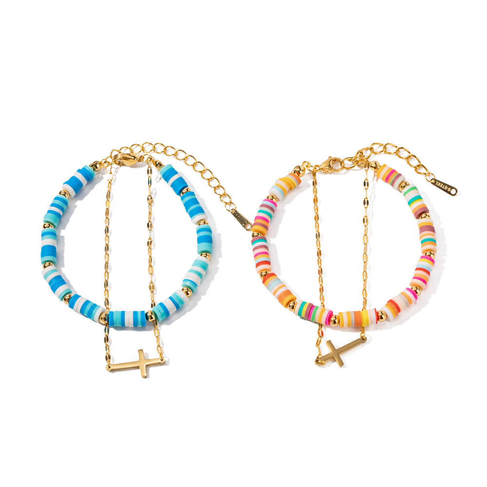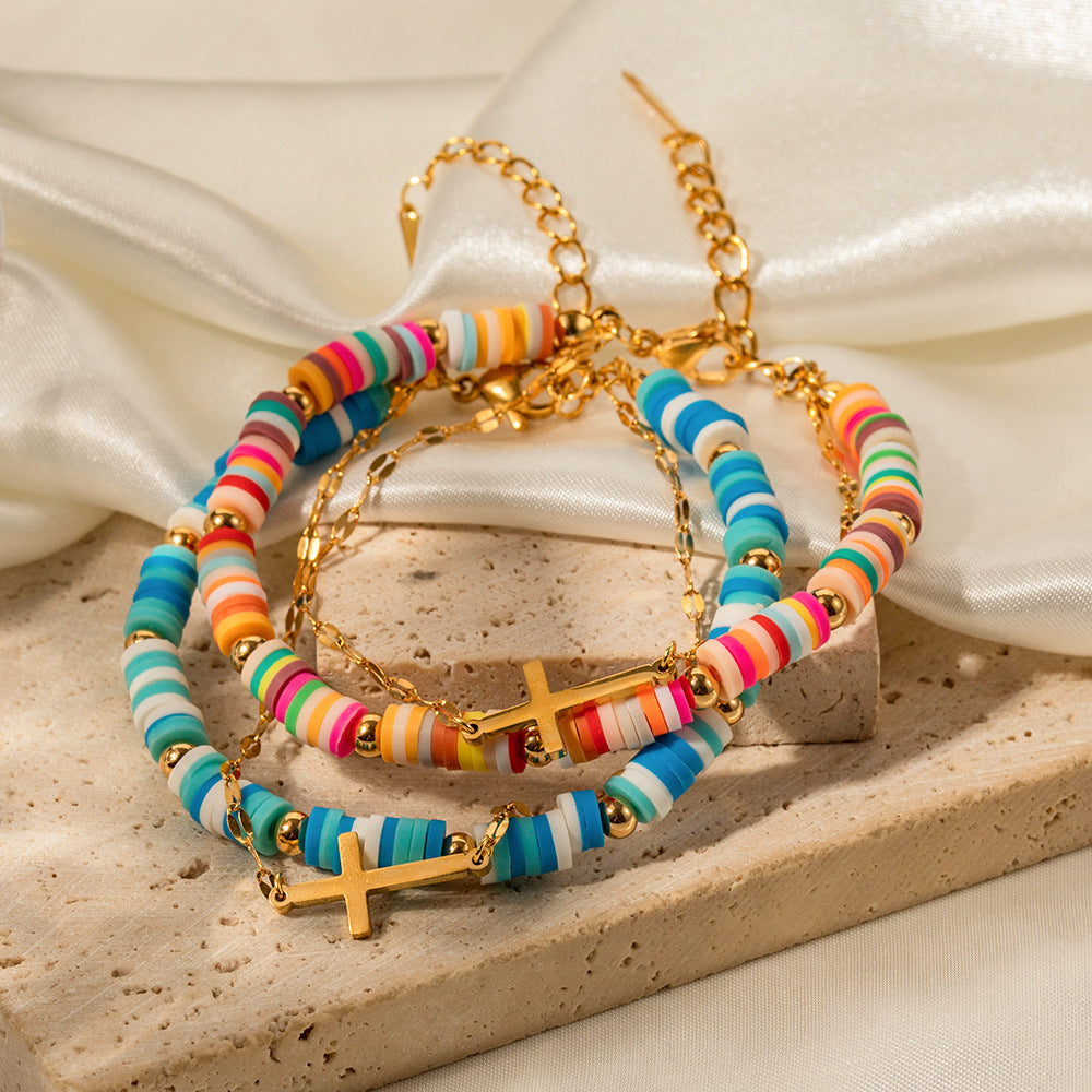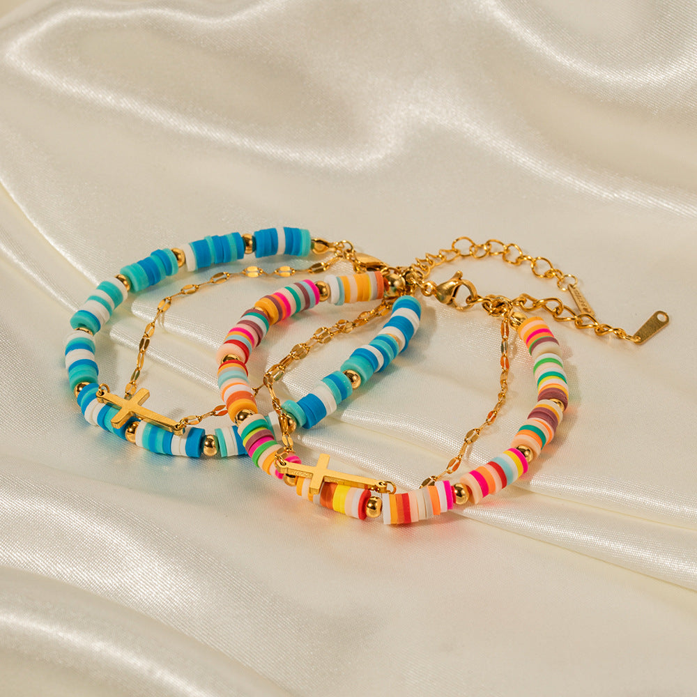 The soft clay material gives the bracelet a light touch, comfortable and natural to wear. The colorful design makes the bracelet vibrant and fun, adding a pop of color to your wrist.