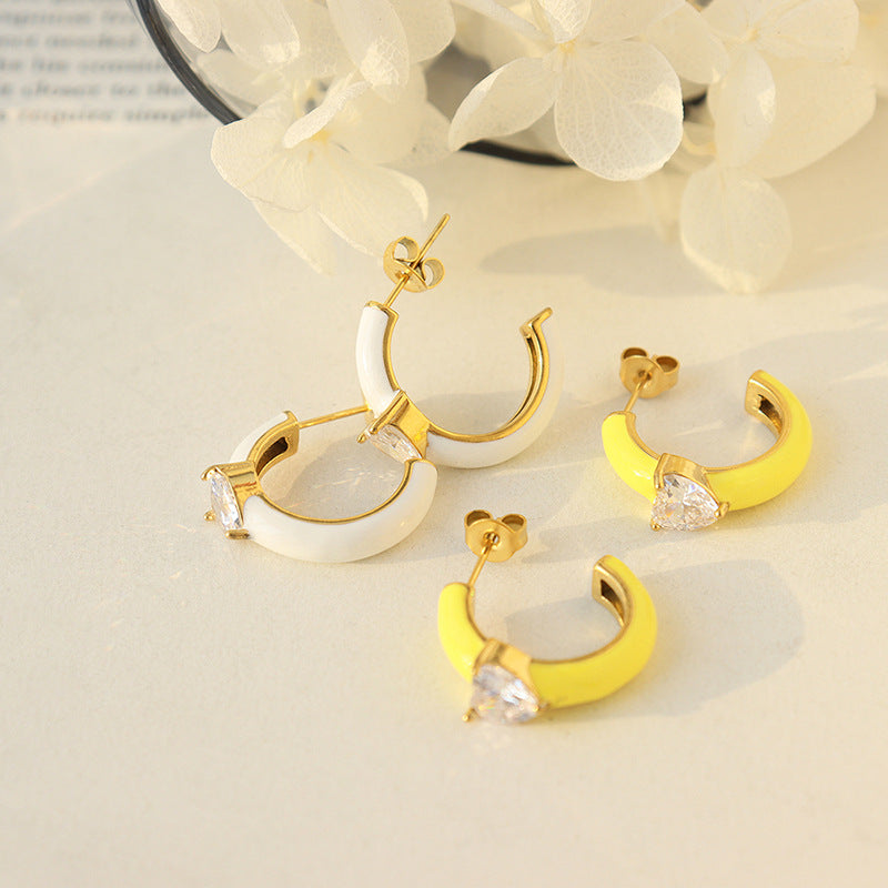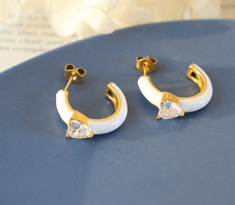 18K Gold Exquisite Dazzling C-shaped Earrings with Heart-shaped Zircon Design
