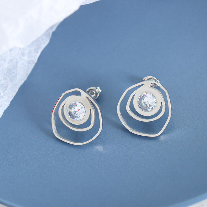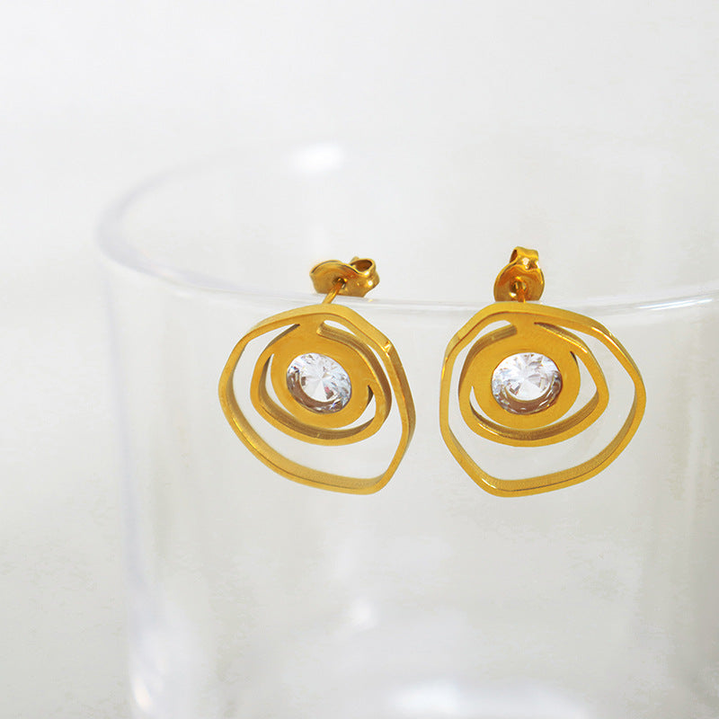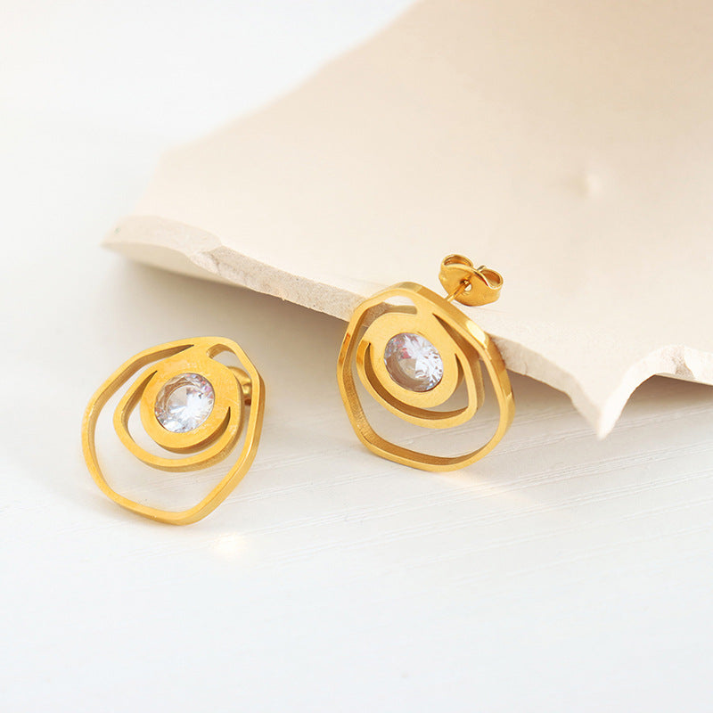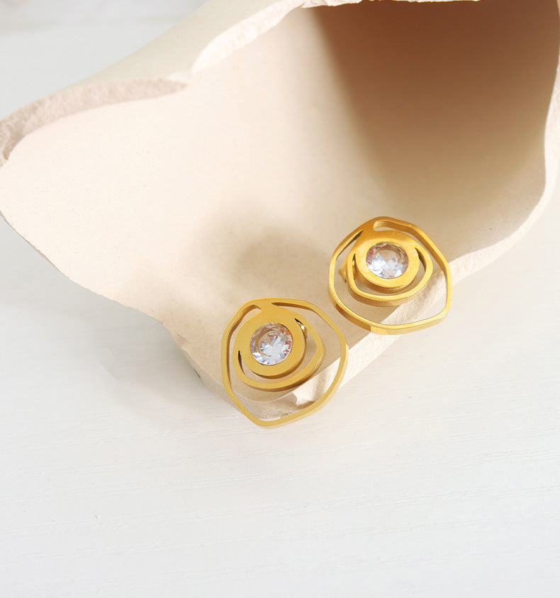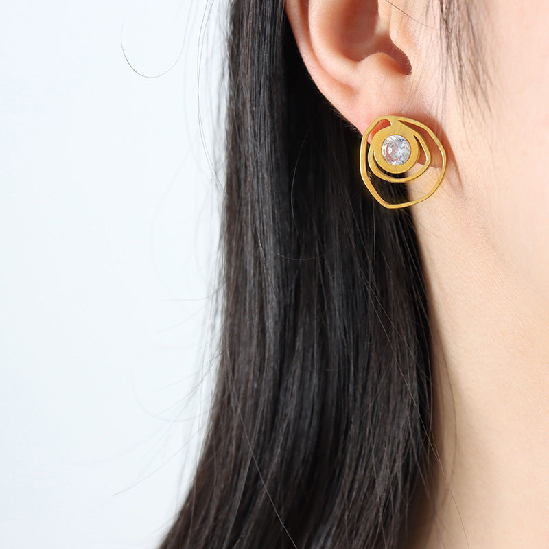 18K Gold Exquisite Dazzling Irregular Hollow Rose Inlaid Zircon Design Versatile Earrings