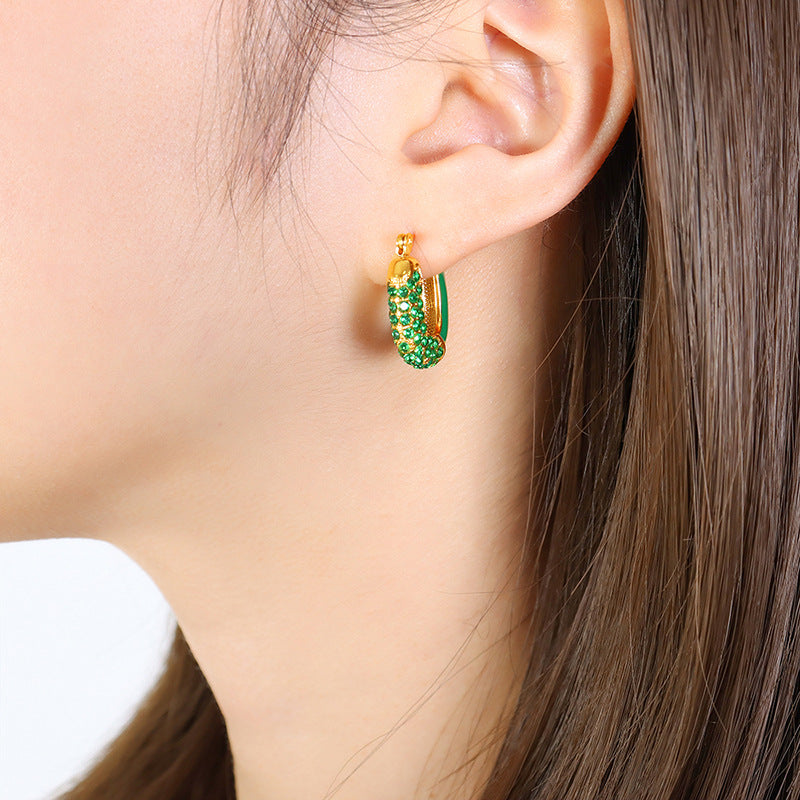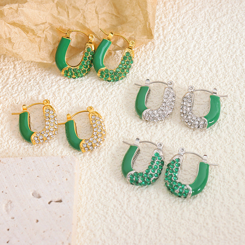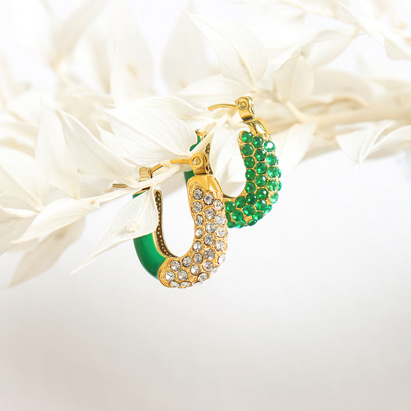 18K Gold Exquisite Dazzling U-Shaped Diamond Design Versatile Earrings