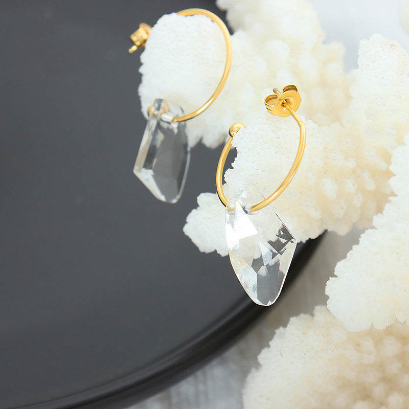 18k Gold Exquisite Simple C-shaped Earrings with Gem Design Versatile