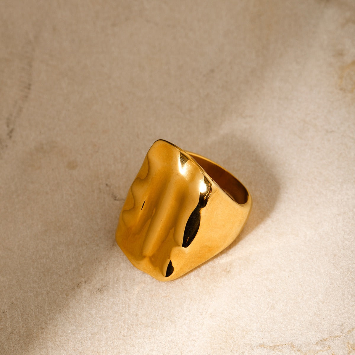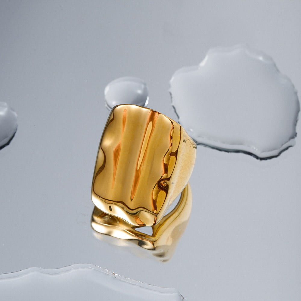 Choose a fashionable and personalized rectangular concave-convex texture design ring in 18k gold to let your hand become a fashion stage, show your personalized taste, and add more fashionable elements to the overall image.