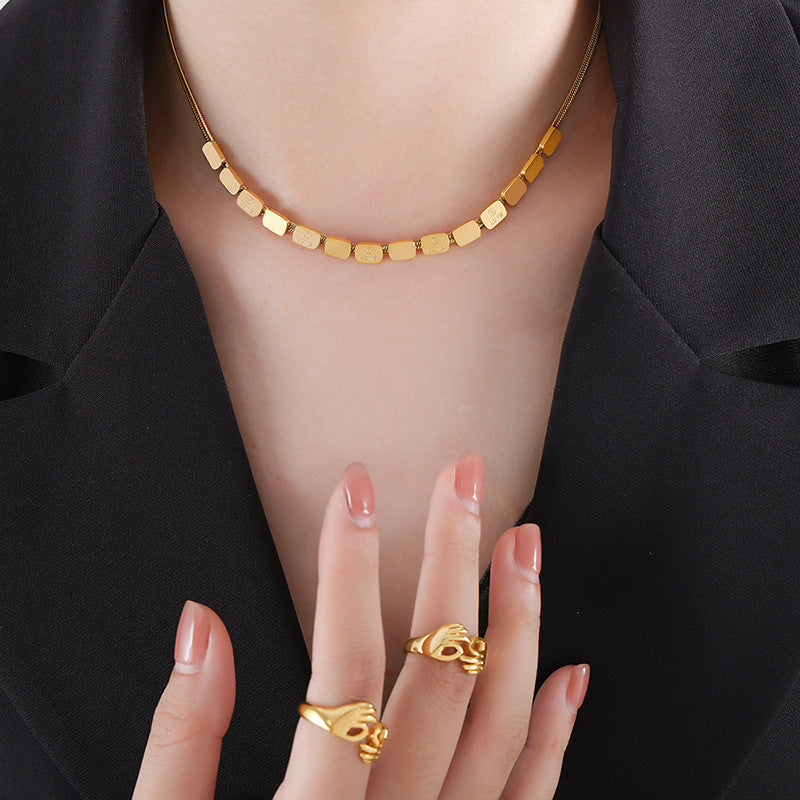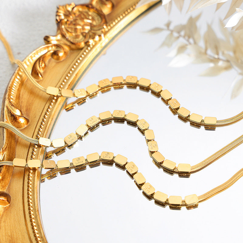18K gold light luxury and noble square pieces with LOVE design versatile necklace
