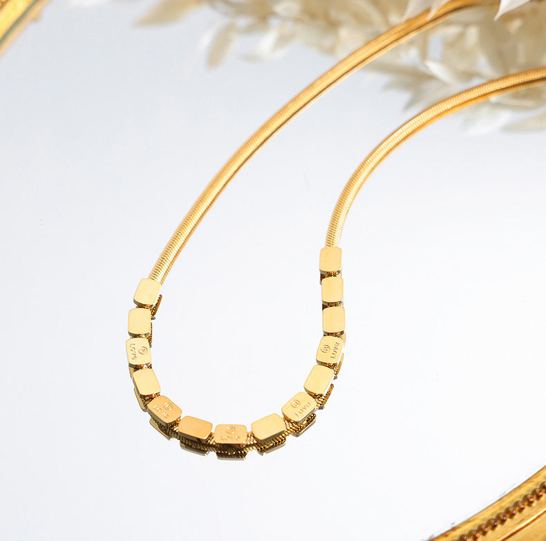 "LOVE" letter design: There is a "LOVE" design on each square piece. The "LOVE" letter pendant conveys romantic and warm emotions, adding a romantic atmosphere to the necklace.