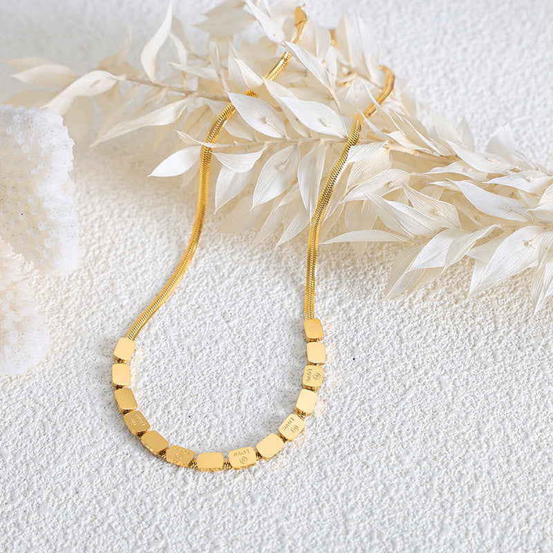 Multiple Square Pieces: Multiple square pieces strung on a chain add geometric beauty and enhance the uniqueness of the design.