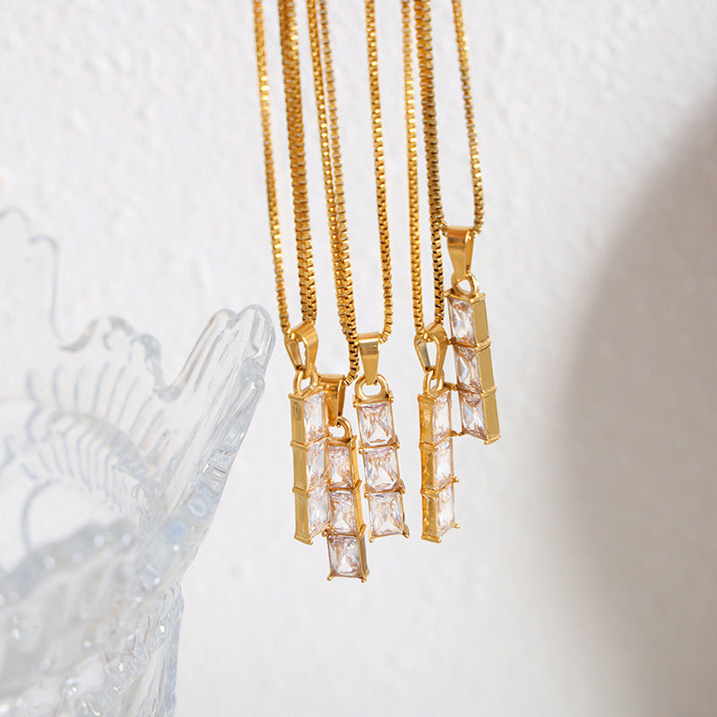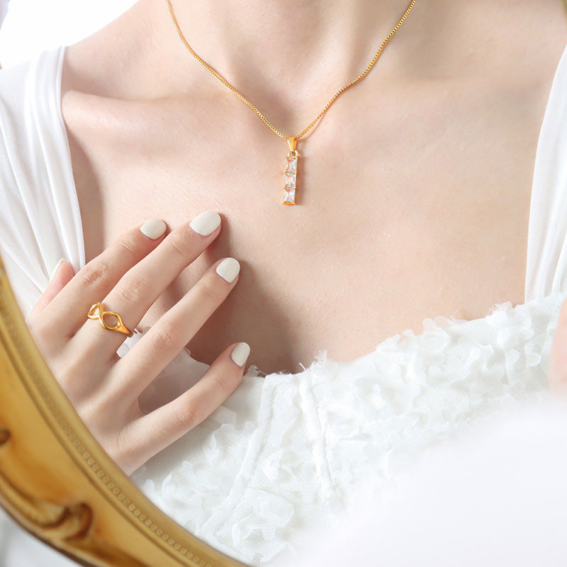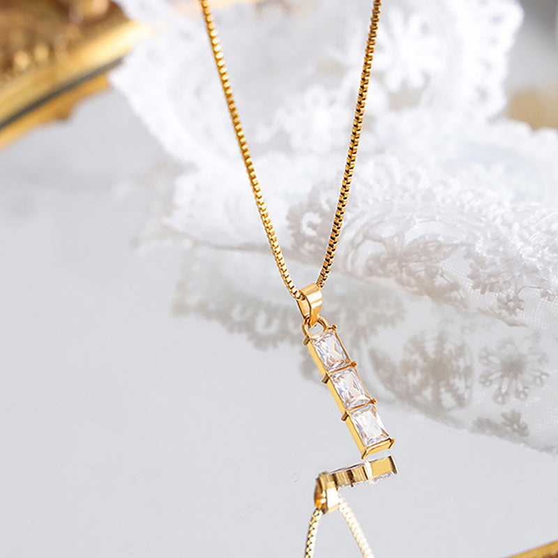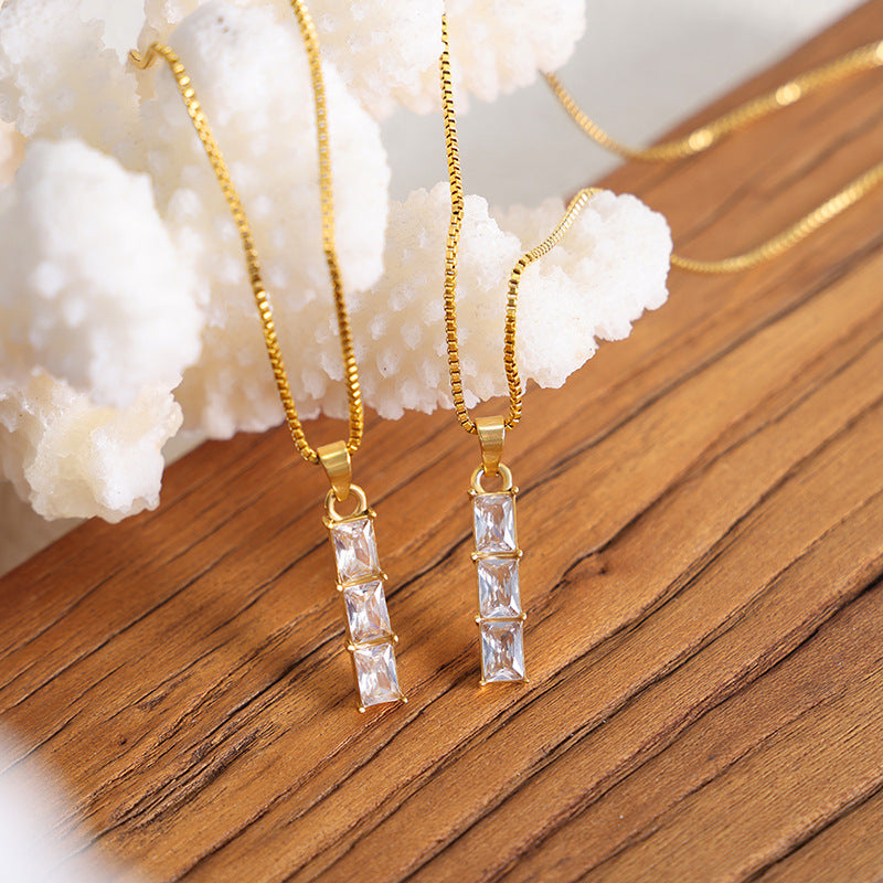 18K gold light luxury simple rectangular gem-set design versatile necklace