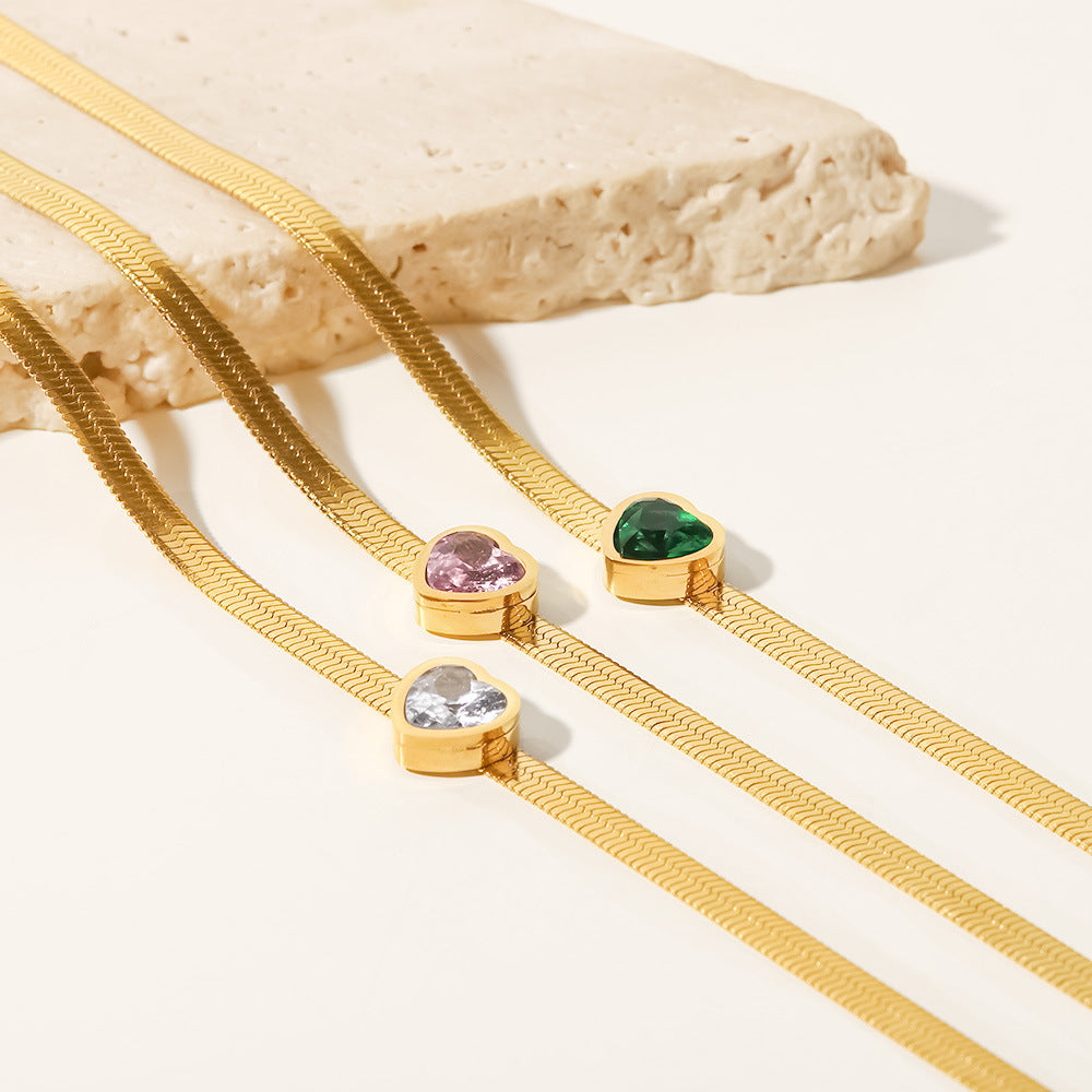 18K Gold Plated Green/White/Pink Heart Zircon Bracelet