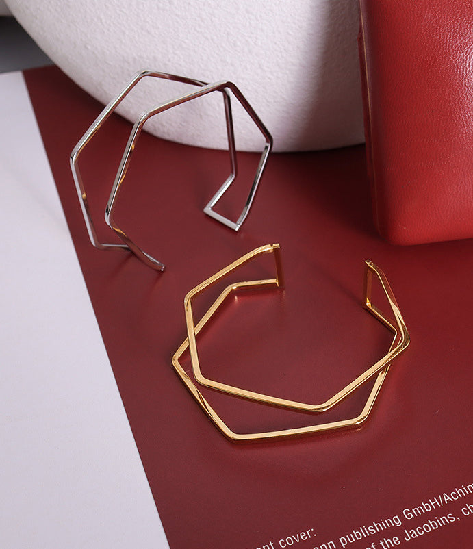 18K gold trendy simple polygonal line hollow double-layer design light luxury style bracelet