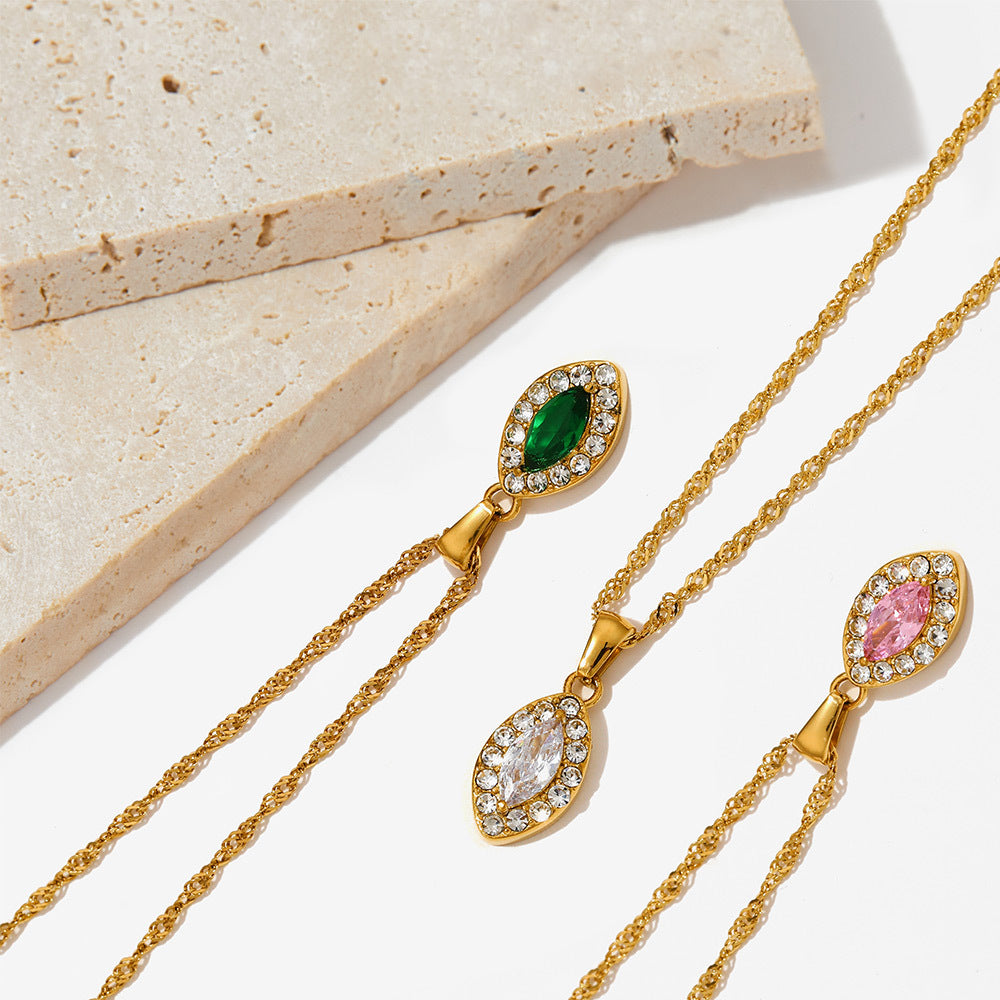 18K noble and dazzling diamond and gem eye design light luxury style necklaces usually have the following features: