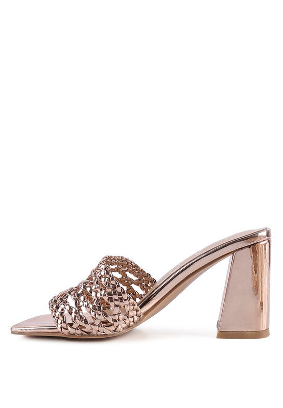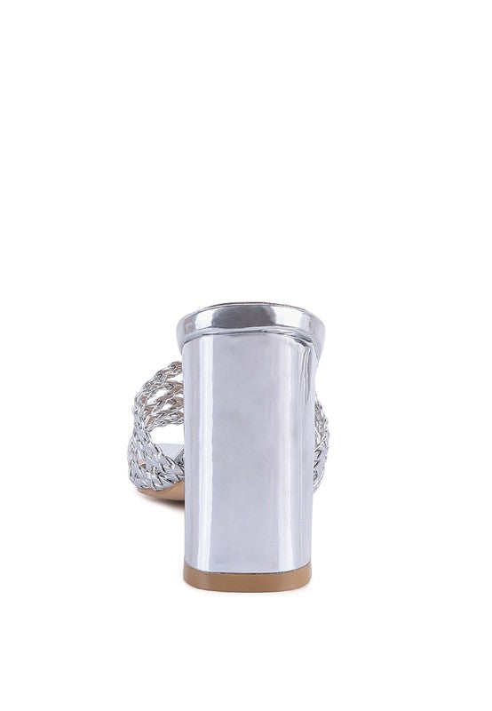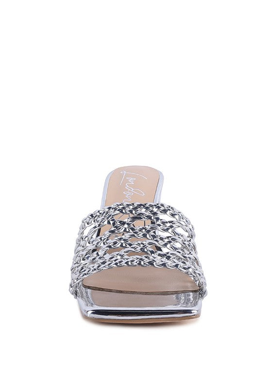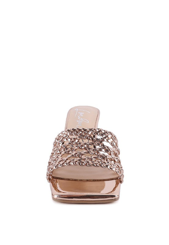 These slider sandals are comfortable and fancy with their metallic upper material. The braided straps give the effect of vines beautifully encasing your feet.