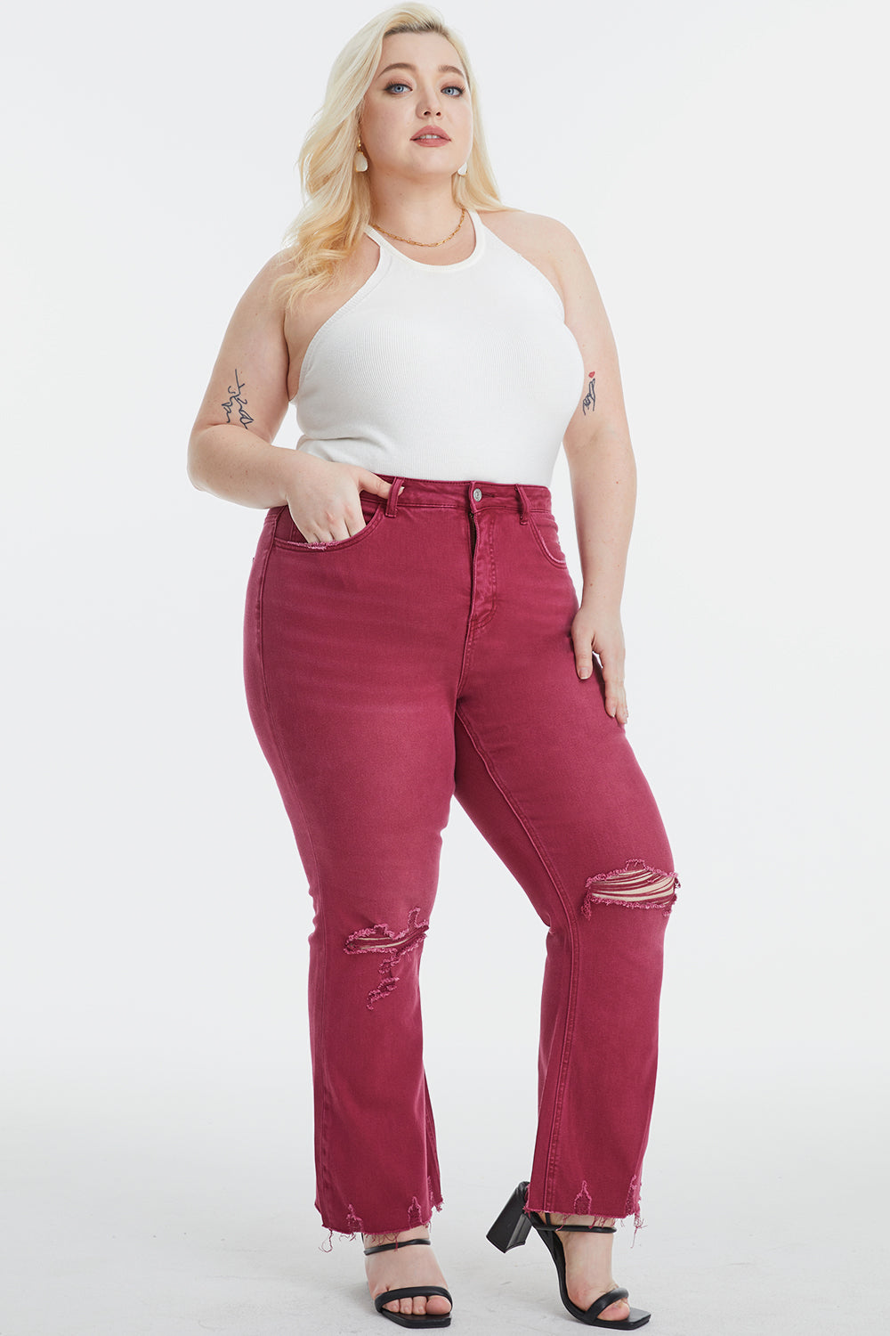 BAYEAS Full Size High Waist Distressed Raw Hem Flare Jeans
