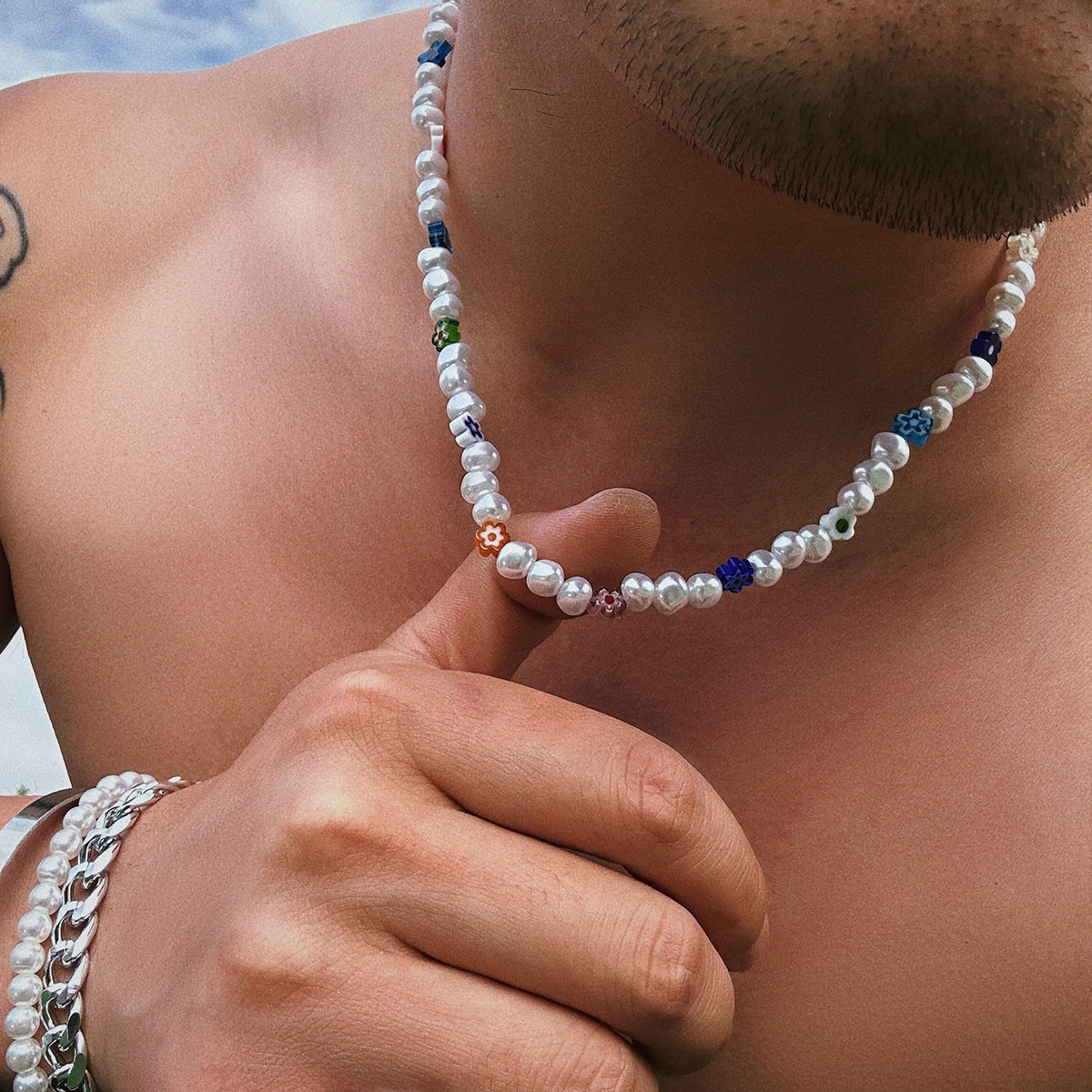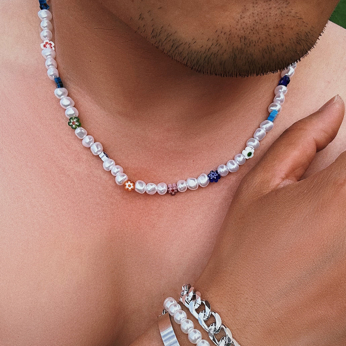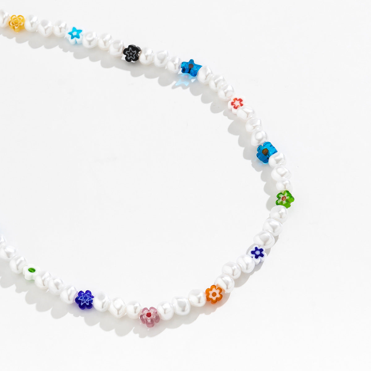 A beautiful accessory for all occasions, this necklace combines the elegance of pearls with the chic of flower beads to add a touch of regality and elegance to your look. Whether worn as an everyday accent or adorned for a special occasion, this necklace will bring you extraordinary charm.
