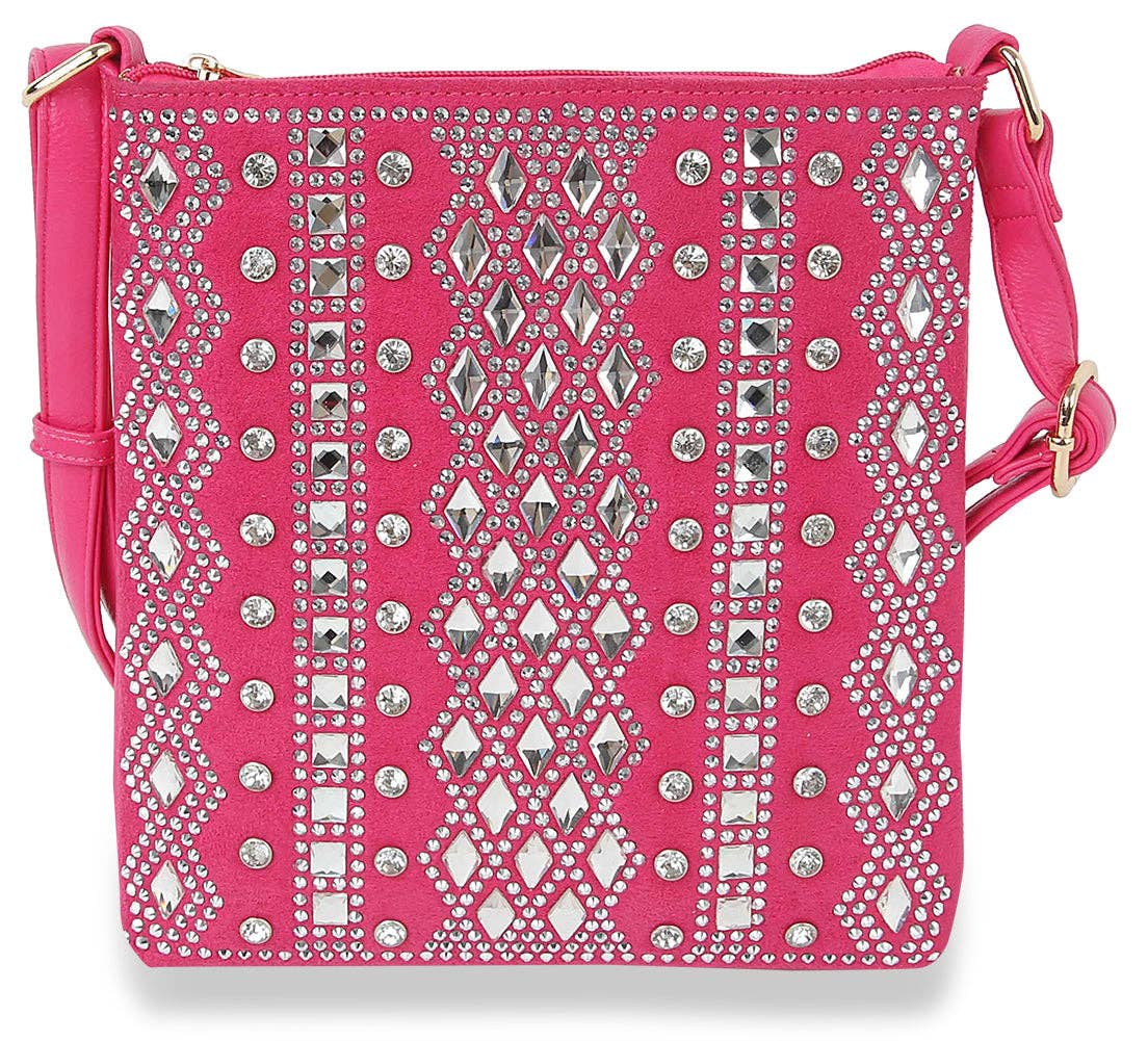 This stunning crossbody features a variety of rhinestone shapes and patterns, that are guaranteed to turn heads.