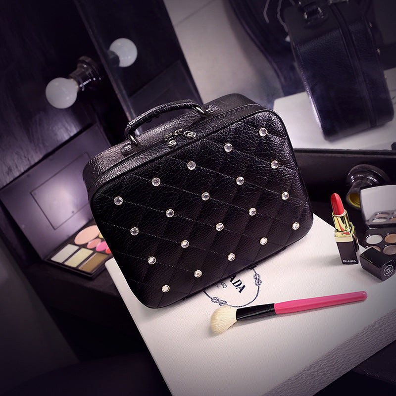High-end Cosmetic Case With Diamond Cosmetic Bag PU Portable